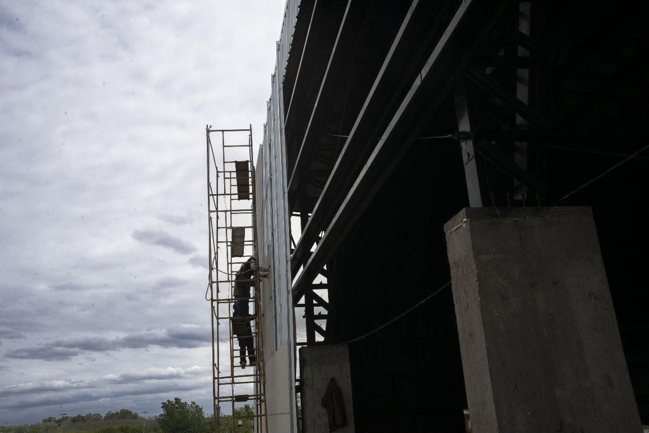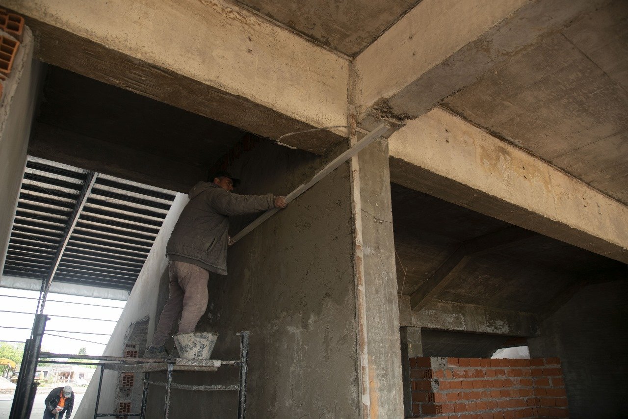 El Municipio de Esteban Echeverría continúa con las obras del Polideportivo Municipal en el predio ubicado en las calles Edison y 20 de Junio (El Jagüel). En los últimos días, los equipos de trabajo realizaron tareas de albañilería general y colocaron los revestimientos externos en el microestadio.