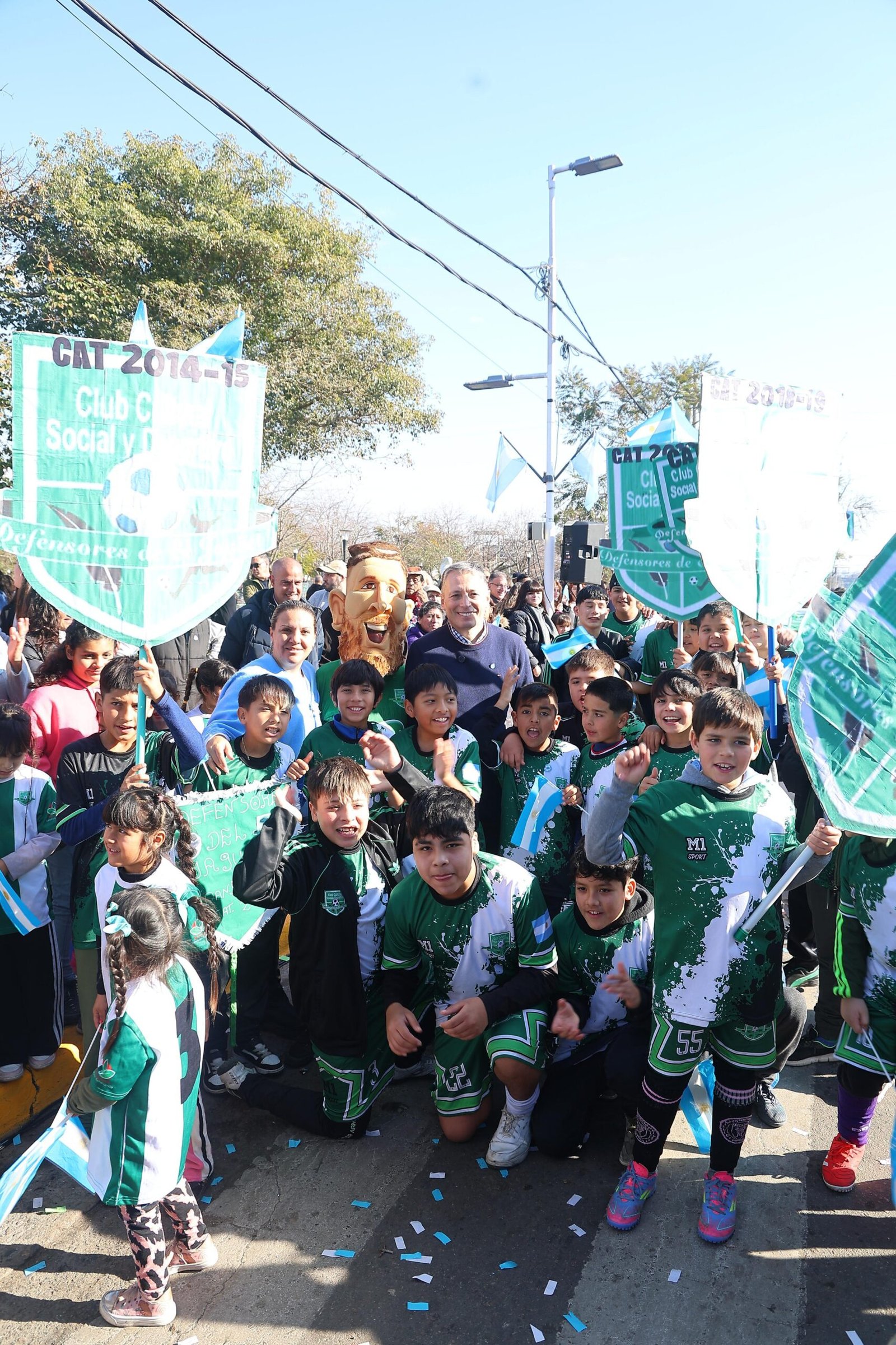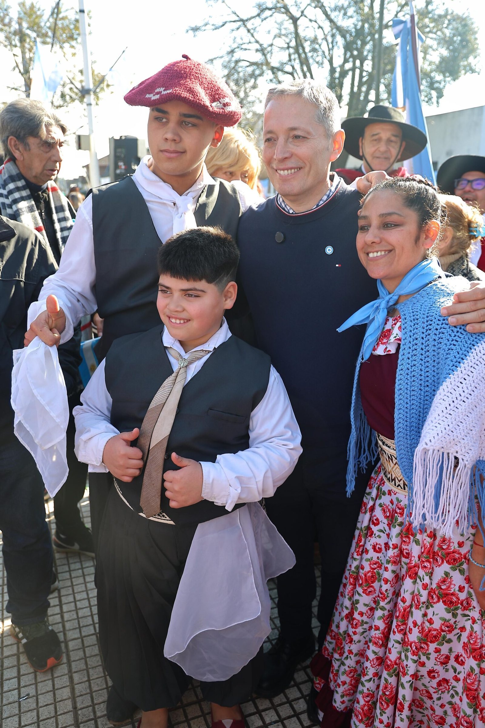 Luego del izamiento de la Bandera Nacional y la interpretación del Himno Nacional a cargo del Ensamble Musical Municipal, integrantes del Centro de Veteranos de Guerra de Malvinas local repartieron chocolate caliente a las vecinas y los vecinos. Además, las familias disfrutaron del tradicional desfile que se realizó sobre la calle Evita y del que participaron ballets tradicionales, centros de jubilados y pensionados, instituciones educativas, sociedades de fomento, asociaciones y clubes del distrito.