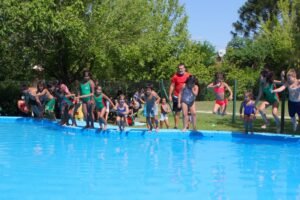 Los kits, que se entregaron en todos los espacios en los que se desarrolla la Colonia de Verano, están compuestos por toallón, remera, gorro para protegerse del sol, traje de baño, ojotas, botella y una mochila.