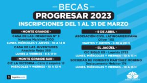 Durante el mes de marzo, el Municipio de Esteban Echeverría realizará la inscripción al programa Becas Progresar destinado a que las vecinas y los vecinos de 16 a 24 años finalicen sus estudios de nivel primario o secundario y avancen en su educación superior o profesional.
