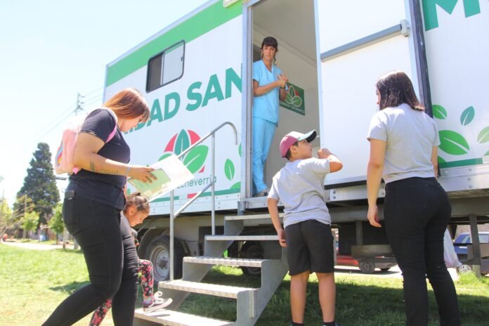 En la plaza Colonia Monte Grande de Luis Guillón, uno de los puntos de atención, vecinas y vecinos pudieron acceder a las vacunas correspondientes al Calendario Nacional, la dosis contra el COVID-19 (mayores de 18 años) y la antigripal.