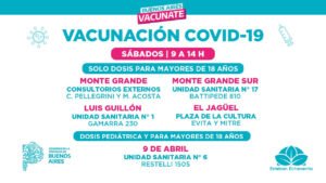 El Municipio de Esteban Echeverría continúa trabajando en el marco de la campaña nacional de vacunación contra el COVID-19. El sábado 28 de enero, de 9 a 14 horas, las vecinas y los vecinos contarán con seis postas a las que podrán acercarse para iniciar o completar sus esquemas de vacunación.