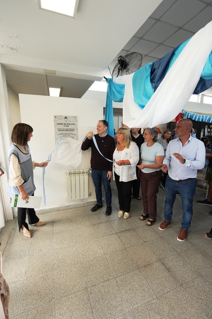 En paralelo, Fernando Gray participó del acto en el Jardín N° 938, que desde ahora lleva el nombre de “Manuel Belgrano”. “Con este nuevo nombre se homenajea a un gran prócer que tanto hizo por la educación y la identidad argentina”, señaló el intendente tras descubrir la placa conmemorativa, acompañado por la directora Carla Salerno, personal docente y no docente, estudiantes y familias.