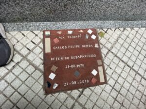 Durante el homenaje del cual participó Teresa (esposa de Carlos Ochoa), Gabriela y Daniel (hijos, hoy funcionarios en la entidad bancaria), familiares y autoridades del banco, Fernando Gray acompañó a las y los presentes en el descubrimiento de la baldosa que recordará a Carlos en la vereda de la sucursal ubicada en Alem 158, y de la placa que será colocada en el interior de la misma.