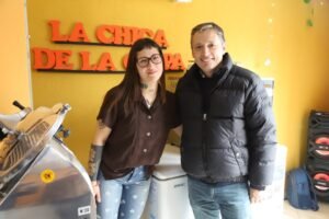 Más tarde, el jefe comunal se encontró con Rocío Giglio, dueña del emprendimiento La Chica de La Chipa, que produce y vende chipá de distintos sabores y tostados con pan de chipá desde hace 2 años.