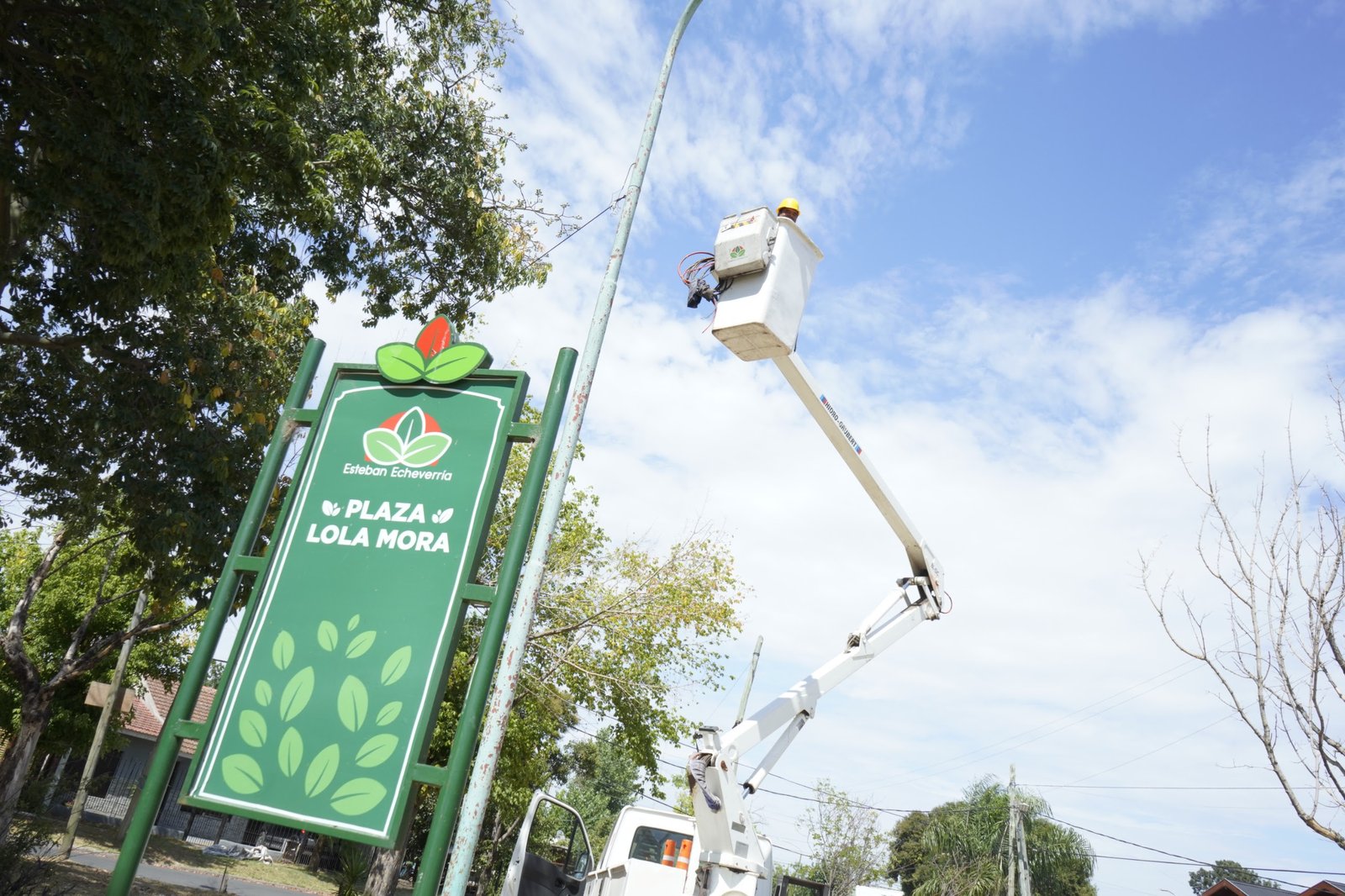 Los equipos del Municipio de Esteban Echeverría llevaron adelante la instalación de luces LED en la plaza Lola Mora, ubicada en Monte Grande.