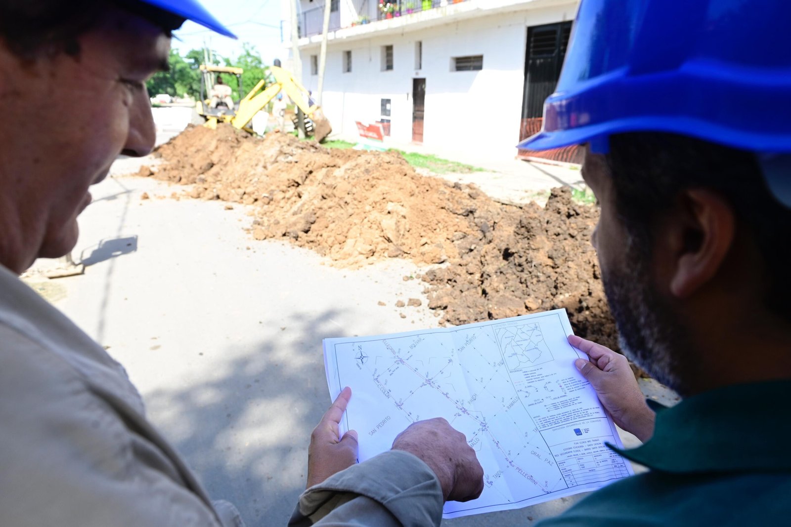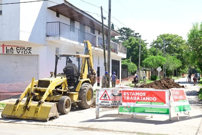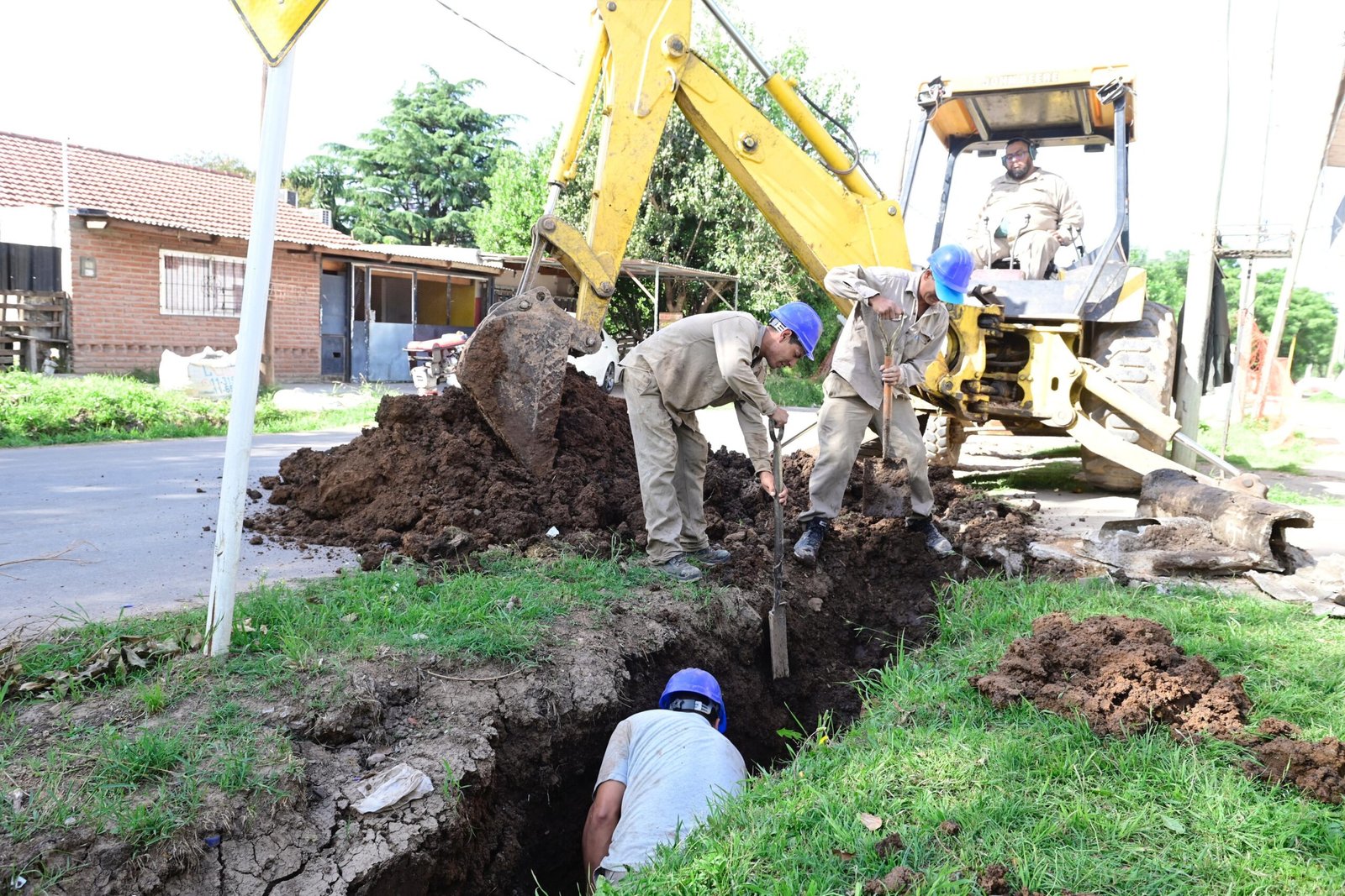 Estos trabajos se realizan con el aporte de Agua y Saneamientos Argentinos (AySA) y forman parte del Plan de Saneamiento que se lleva adelante para que las vecinas y los vecinos del distrito puedan acceder al servicio de cloacas.