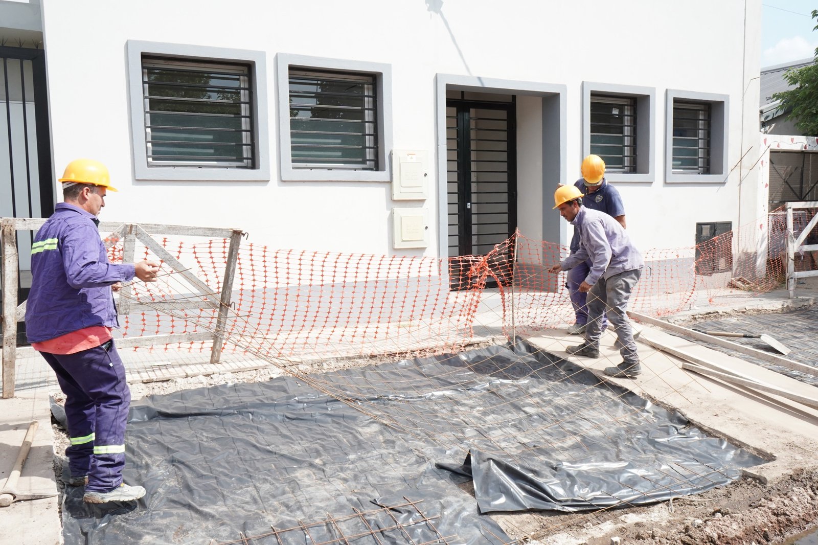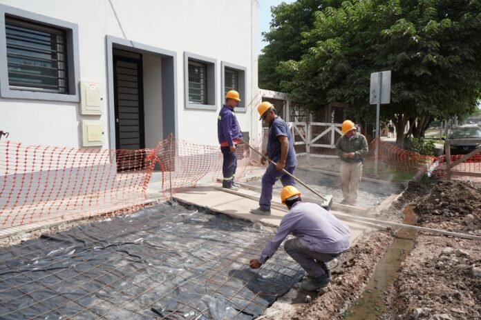Las tareas incluyen el desmonte de la vereda exterior, el agregado de tosca en las zonas requeridas y la colocación de hormigón, además de la reposición del solado deteriorado. En total, se completarán 90 m2 de vereda. Además, se reconstruirá el acceso vehicular reforzado con el fin de que la zona pueda soportar tránsito pesado.