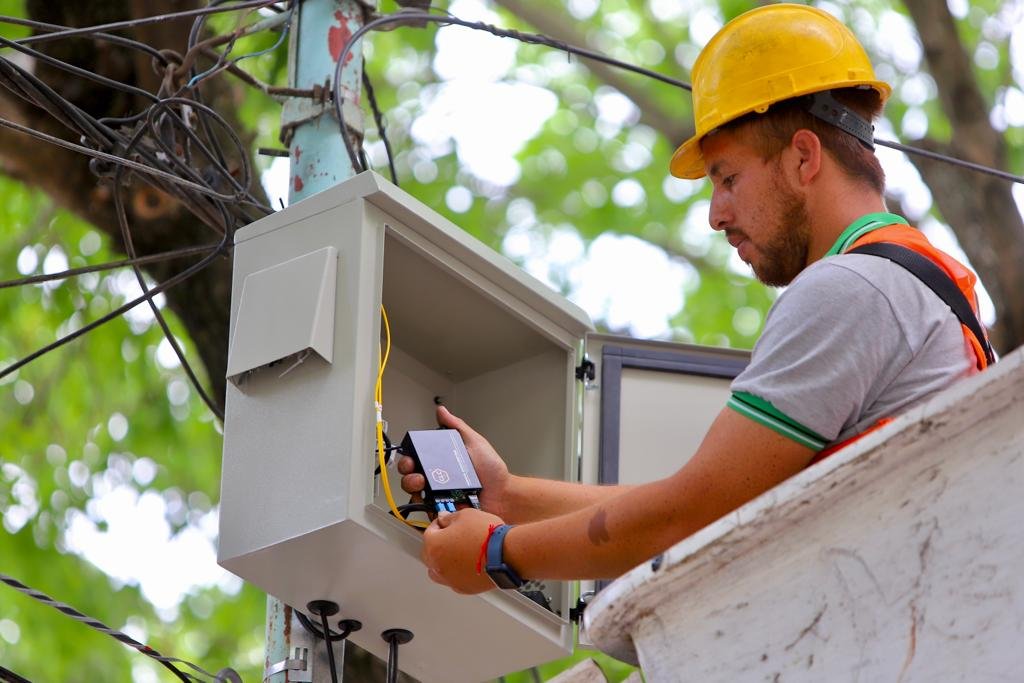Los equipos de trabajo del Municipio de Esteban Echeverría continúan trabajando en el tendido de fibra óptica y la instalación de cámaras de seguridad sobre la calle Benavídez entre Ocantos y la avenida Bruzone y también en la calle Constanzó entre Máximo Paz y la avenida Fair (Monte Grande).