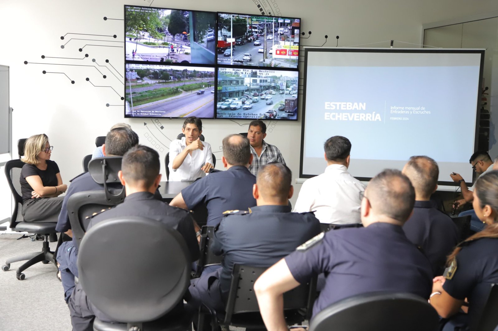 Este viernes, 8 de marzo, las autoridades municipales y provinciales se reunieron en el Centro Operativo de Monitoreo (COM) municipal para planificar la mejora en el intercambio de información entre la Guardia Urbana local y la Policía bonaerense. También se centraron en cómo abordar el fortalecimiento del trabajo en conjunto en los operativos de seguridad y prevención del delito que se llevan a cabo en el partido, y los mecanismos de contención a la ciudadanía. Del encuentro participaron el secretario de Seguridad Comunal, Gabriel Villegas; el Subsecretario de Fiscalización y Control Policial del AMBA y Capital, Andrés Escudero; la directora de Gestión de la Información Criminal en Región AMBA Sur, Florencia Nella Castro, y las jefas y los jefes policiales de Esteban Echeverría.