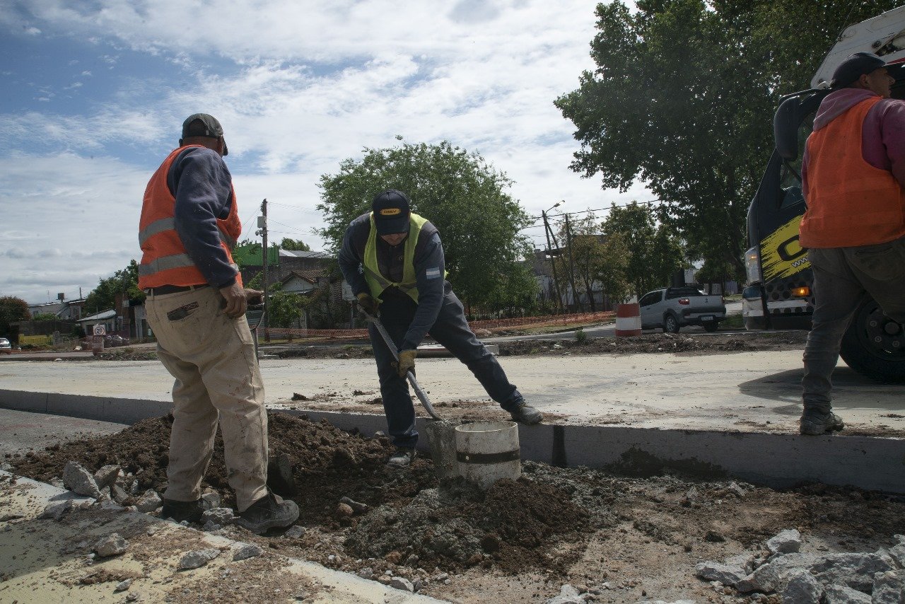 Actualmente, los equipos de trabajo realizan los pozos y colocan 50 postes de iluminación sobre el cantero central, en el tramo comprendido entre las calles Liniers y Moreno, donde en los próximos días se instalarán las luminarias.