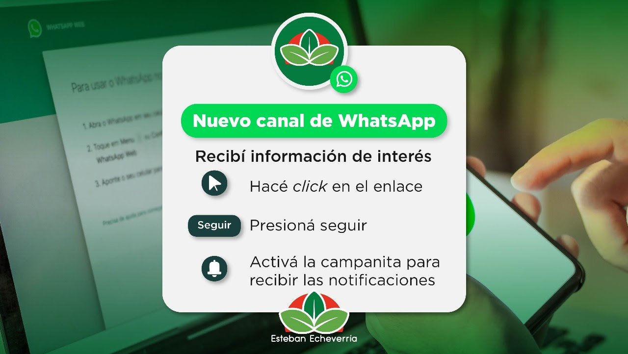 El Municipio de Esteban Echeverría cuenta con un canal oficial de WhatsApp mediante el que las vecinas y los vecinos podrán recibir información de interés y novedades acerca de las actividades que se realizan en el distrito de una manera rápida y sencilla.