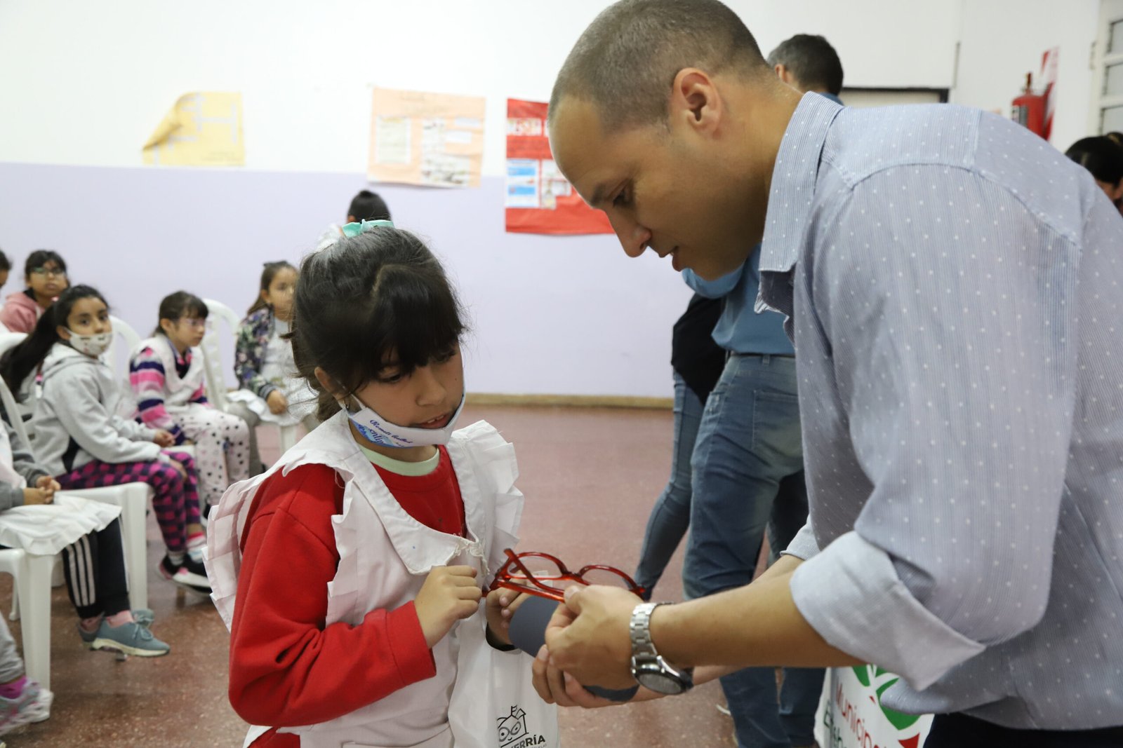 En primer lugar, el equipo de trabajo visitó la Escuela Primaria N° 9 de Canning, donde entregó 117 anteojos a estudiantes. Más tarde, se trasladó a la Escuela Primaria N° 33 de El Jagüel, donde 113 chicas y chicos recibieron los pares de lentes.