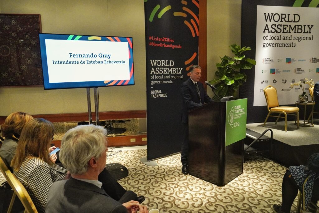 El intendente de Esteban Echeverría y presidente de Mercociudades, Fernando Gray, expuso en el encuentro Día de los Gobiernos Locales y Regionales, que se llevó a cabo en la ciudad de Nueva York, donde se abordó el Derecho a la Ciudad y el rol de los gobiernos municipales en el desarrollo urbano sostenible y la implementación de la Nueva Agenda Urbana.