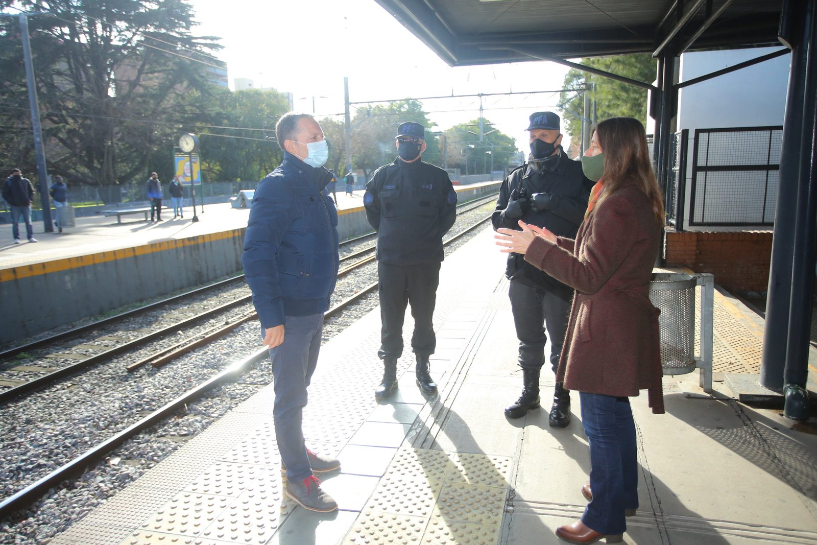 Durante la jornada, Gray y Frederic supervisaron los operativos de control de permisos de pasajeros que realiza la Policía Federal Argentina en la estación de trenes de Monte Grande, que buscan reducir la cantidad de personas que se trasladan de un sitio a otro y evitar la propagación del COVID-19.