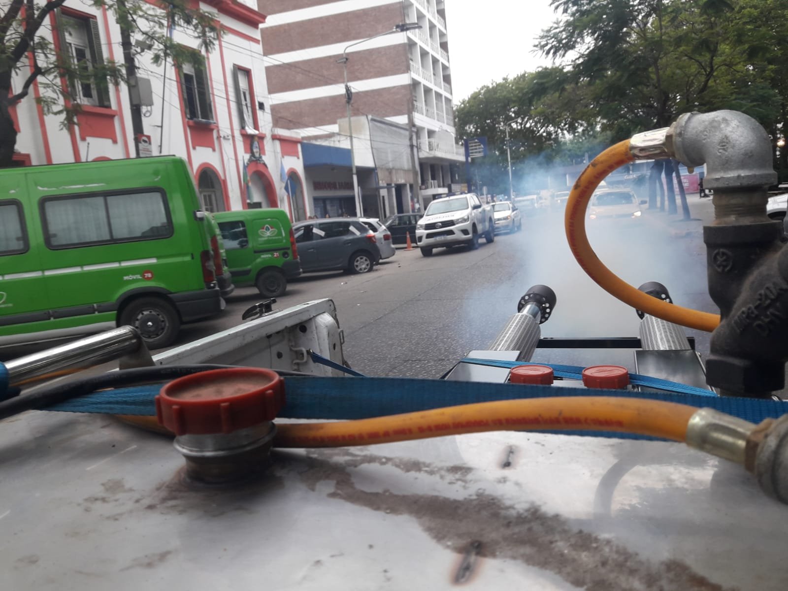 Los equipos del Municipio de Esteban Echeverría desarrollan operativos de fumigación en diferentes barrios del distrito para evitar la reproducción del mosquito Aedes aegypti, que transmite enfermedades virales como el dengue.