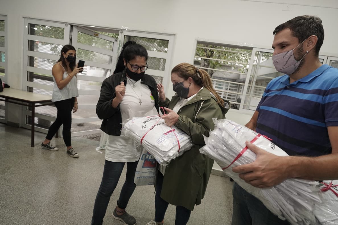 En una nueva jornada, las referentes barriales de Santa Catalina, Las Moreras y Parish Robertson, se acercaron al CIC Parish Robertson, ubicado en la calle Primo Tricotti y Prayones de la localidad de Luis Guillón, donde recibieron los guardapolvos que les permitirá a las y los estudiantes iniciar las clases en igualdad de condiciones.