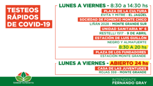 Con el fin de avanzar en la detección temprana del COVID-19 y disminuir la circulación del virus en la comunidad, el Municipio de Esteban Echeverría continúa con la realización de test rápidos en los centros distribuidos en las distintas localidades.