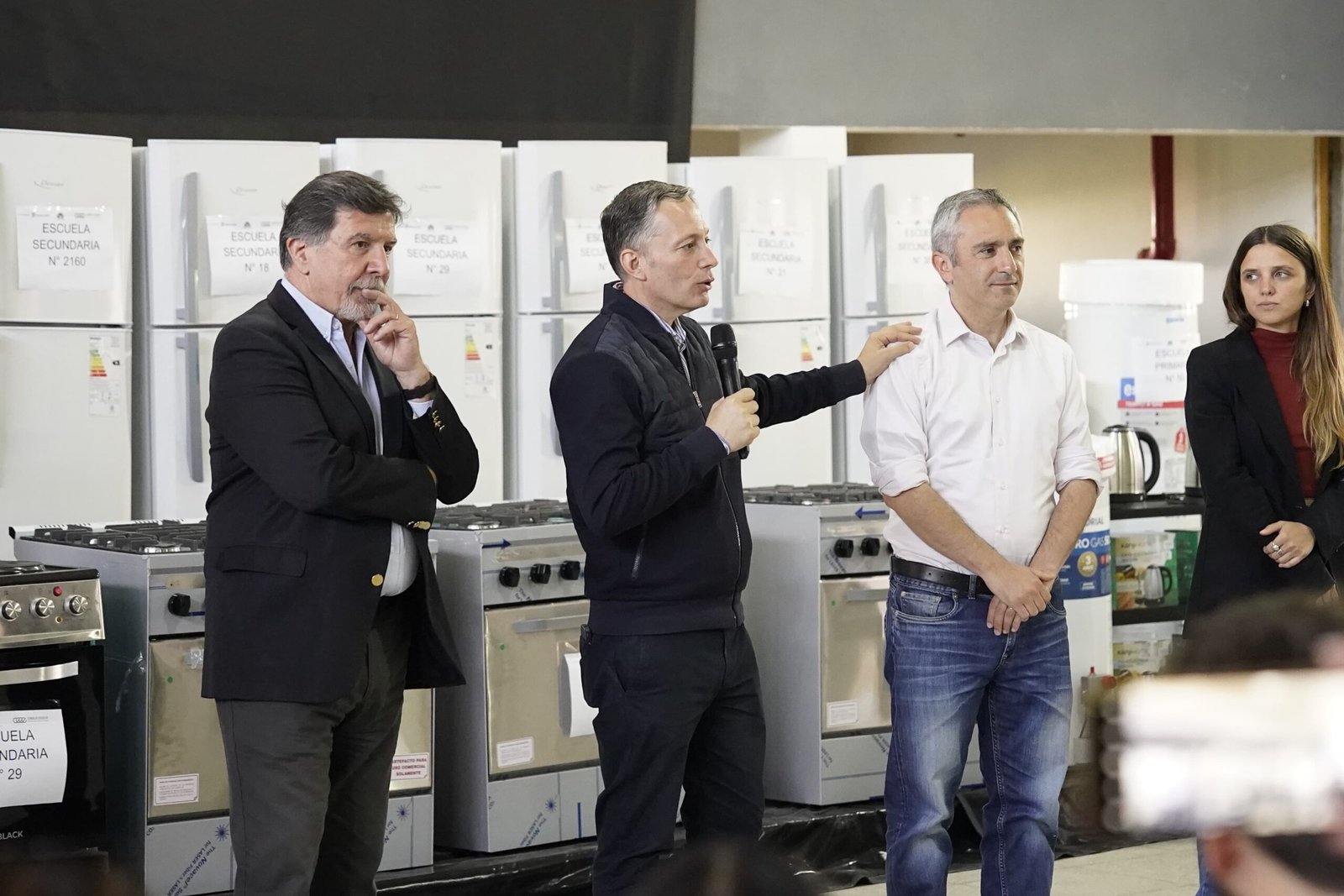 El intendente de Esteban Echeverría, Fernando Gray, acompañado por el ministro de Desarrollo de la Comunidad de la Provincia de Buenos Aires, Andrés Larroque, y el director general de Cultura y Educación de la Provincia de Buenos Aires, Alberto Sileoni, entregaron equipamiento a 43 escuelas del distrito para fortalecer el Servicio Alimentario Escolar (SAE) de las instituciones educativas.