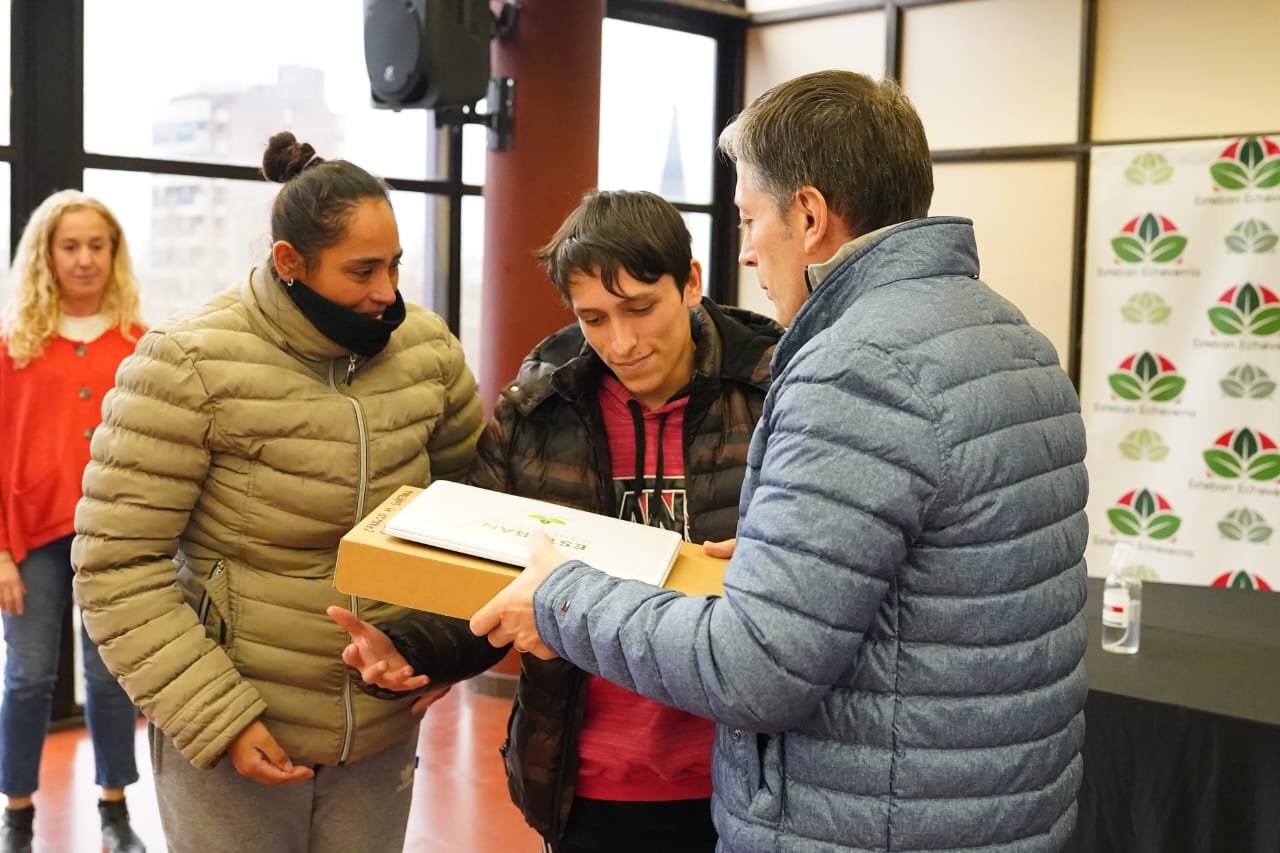 Durante el encuentro realizado en el cuarto piso del edificio municipal, el intendente entregó notebooks a vecinas y vecinos del distrito para que continúen sus estudios, como es el caso de Tobías del barrio Plan Federal (Monte Grande), que asiste a la Escuela de Educación Especial EPEN y que va a utilizar la computadora para seguir con su aprendizaje.