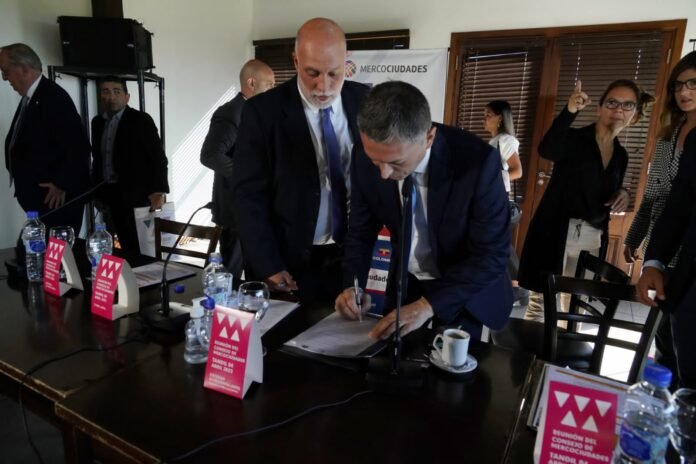En el encuentro, que se desarrolló en Tandil, estuvieron presentes la intendenta Carolina Cosse (Montevideo, Uruguay) y los intendentes Miguel Lunghi (Tandil, Buenos Aires), Daniel Gesteira (Villa Carlos Paz, Córdoba), Nicolás Cuesta (San Justo, Santa Fe) y Walther Marcolini (General Alvear, Mendoza).
