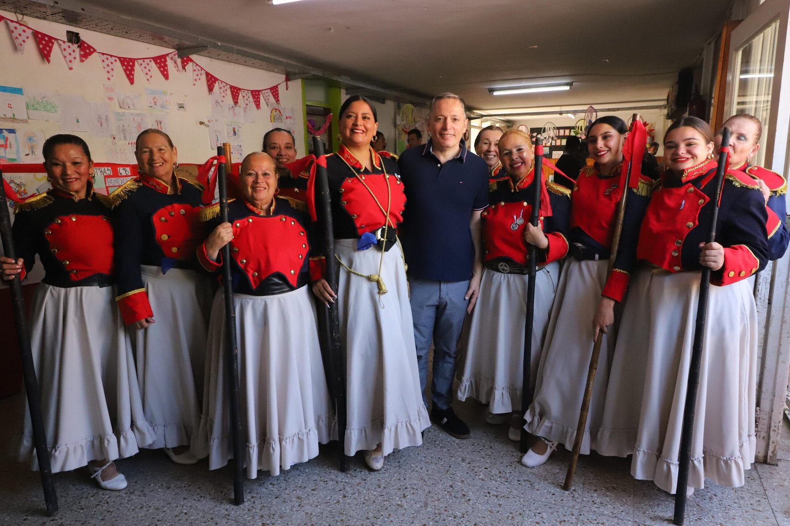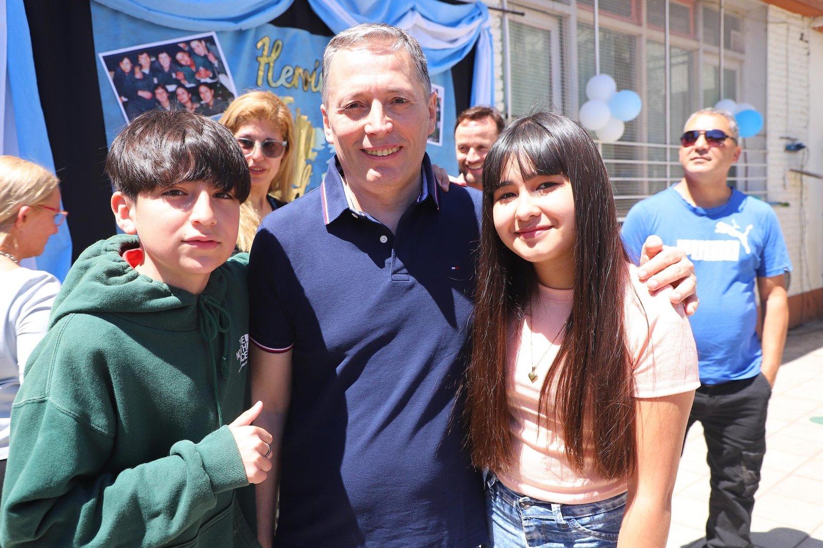 Durante la jornada, el jefe comunal estuvo acompañado por autoridades educativas del distrito, la directora de la escuela, Malen Battiaz, docentes, auxiliares, estudiantes y familias. También por Liliana Colino, veterana de Malvinas —fue enfermera y única mujer militar argentina que estuvo en las Islas Malvinas durante la guerra—, Américo Farías, presidente del Centro de Veteranos de Guerra de Esteban Echeverría, e integrantes de esa entidad.