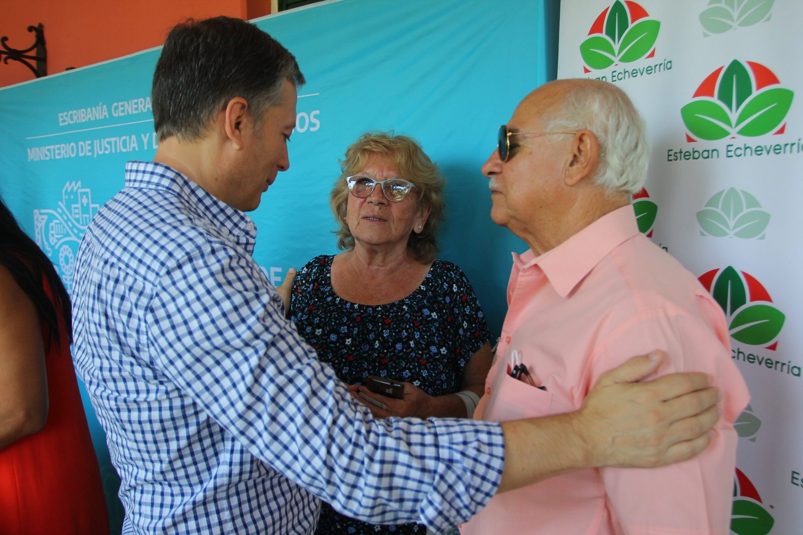 “Muy contento de seguir avanzando con esta política pública que llevamos adelante desde el Municipio, que permite que familias de Esteban Echeverría puedan contar con el título de sus viviendas de manera gratuita”, señaló Fernando Gray acompañado por Paulo César Días, escribano adscripto de la Escribanía General de Gobierno de la Provincia de Buenos Aires.