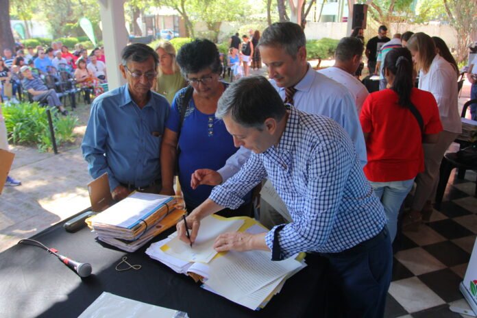 El intendente de Esteban Echeverría, Fernando Gray, participó junto con familias del distrito de la toma de 253 firmas de escrituras en las instalaciones del Museo Histórico Municipal La Campana (Deán Funes 1221, El Jagüel). El Municipio lleva adelante esta iniciativa con el objetivo de que las vecinas y los vecinos accedan a la regularización dominial gratuita de sus viviendas.