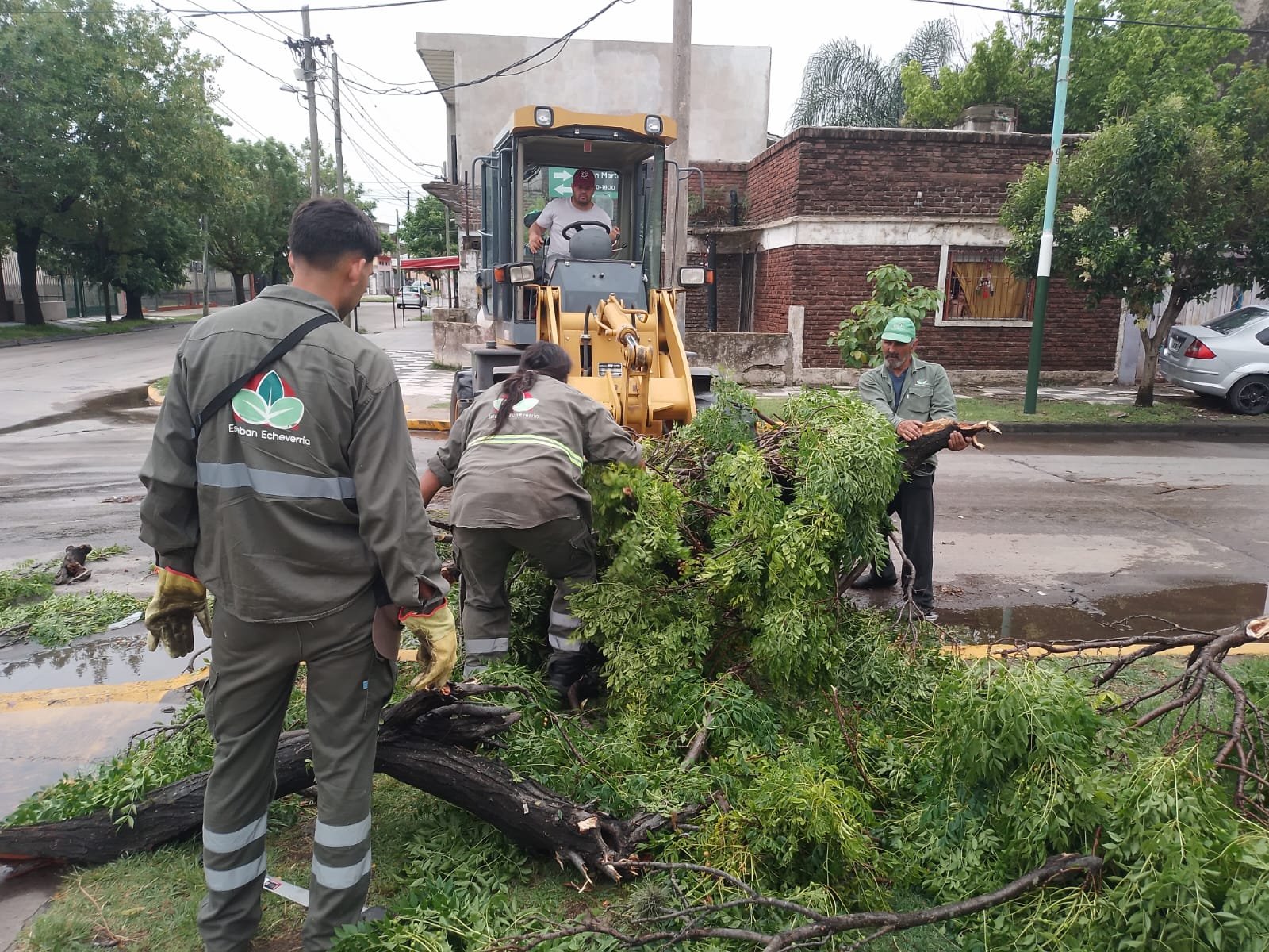 Desde esta mañana, las cuadrillas del Municipio efectuaron la limpieza de sumideros, la recolección de residuos y la desobstrucción de avenidas, calles y plazas de todas las localidades. Además, relevan la cantidad de postes caídos o inclinados y envían la información a las empresas y dependencias municipales (tendido eléctrico, a Edesur; postes de luz al sector de luminarias del distrito; y postes del servicio de televisión por cable y telefonía, a las compañías correspondientes), a la vez que delimitan las zonas para evitar daños.