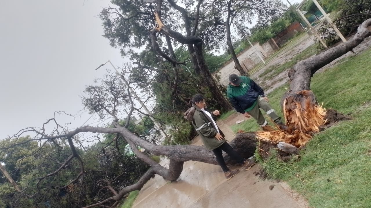 Asimismo, los equipos continuaron retirando carteles, ramas y árboles caídos, en algunos casos, con ayuda de palas cargadoras. Esto se suma a la asistencia que se brinda a familias e instituciones afectadas por el temporal.