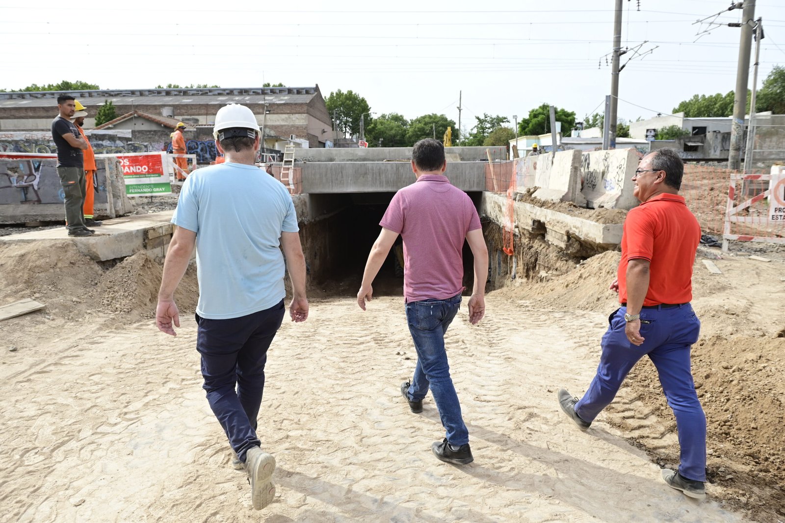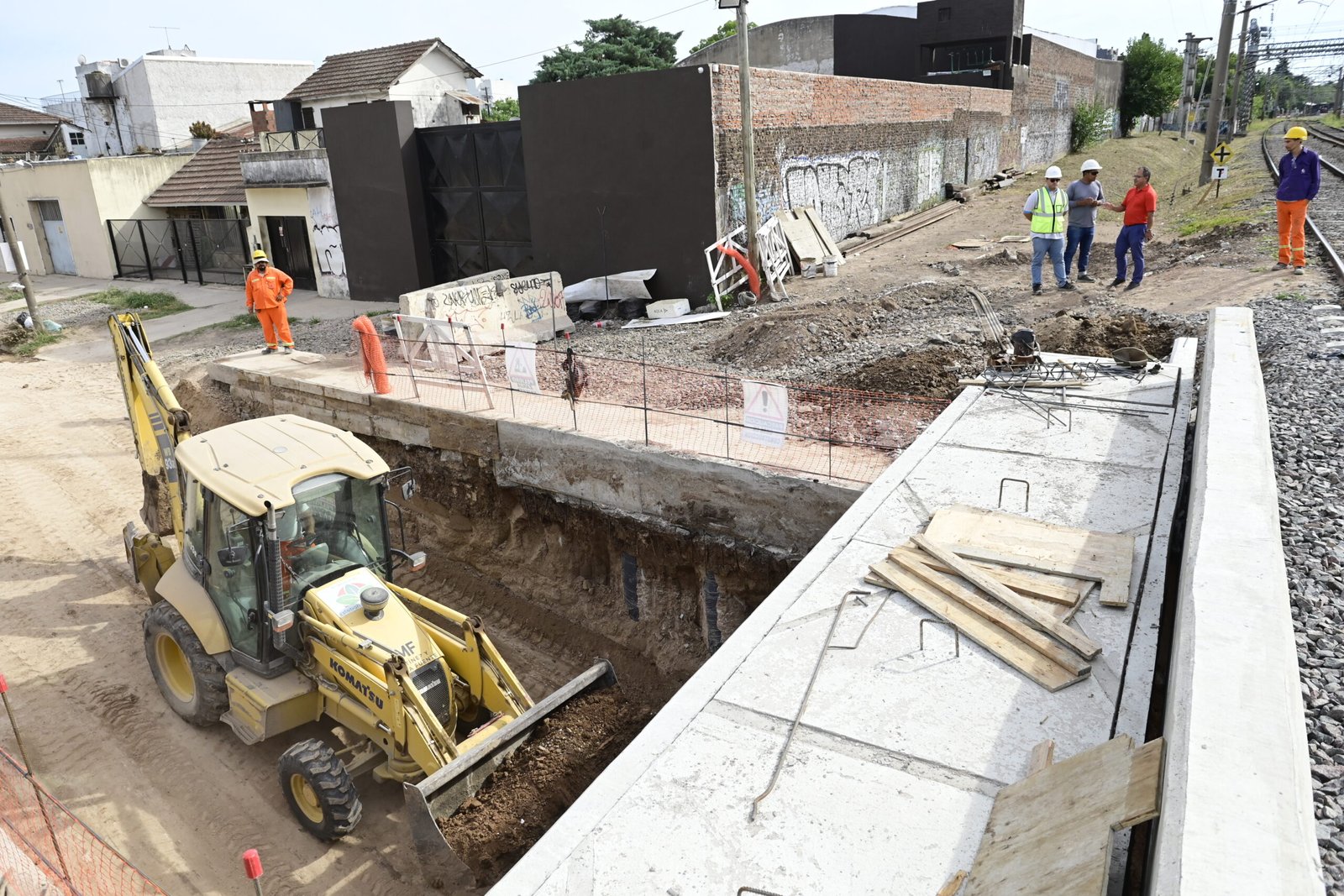 El intendente de Esteban Echeverría, Fernando Gray, recorrió el avance de la construcción de un paso bajo nivel en la intersección de las calles Rebizo-General José María Paz y las vías del ferrocarril Roca, en Monte Grande. Una vez terminados, los trabajos permitirán mayor seguridad vial, fluidez en el tránsito vehicular y mejor conectividad.