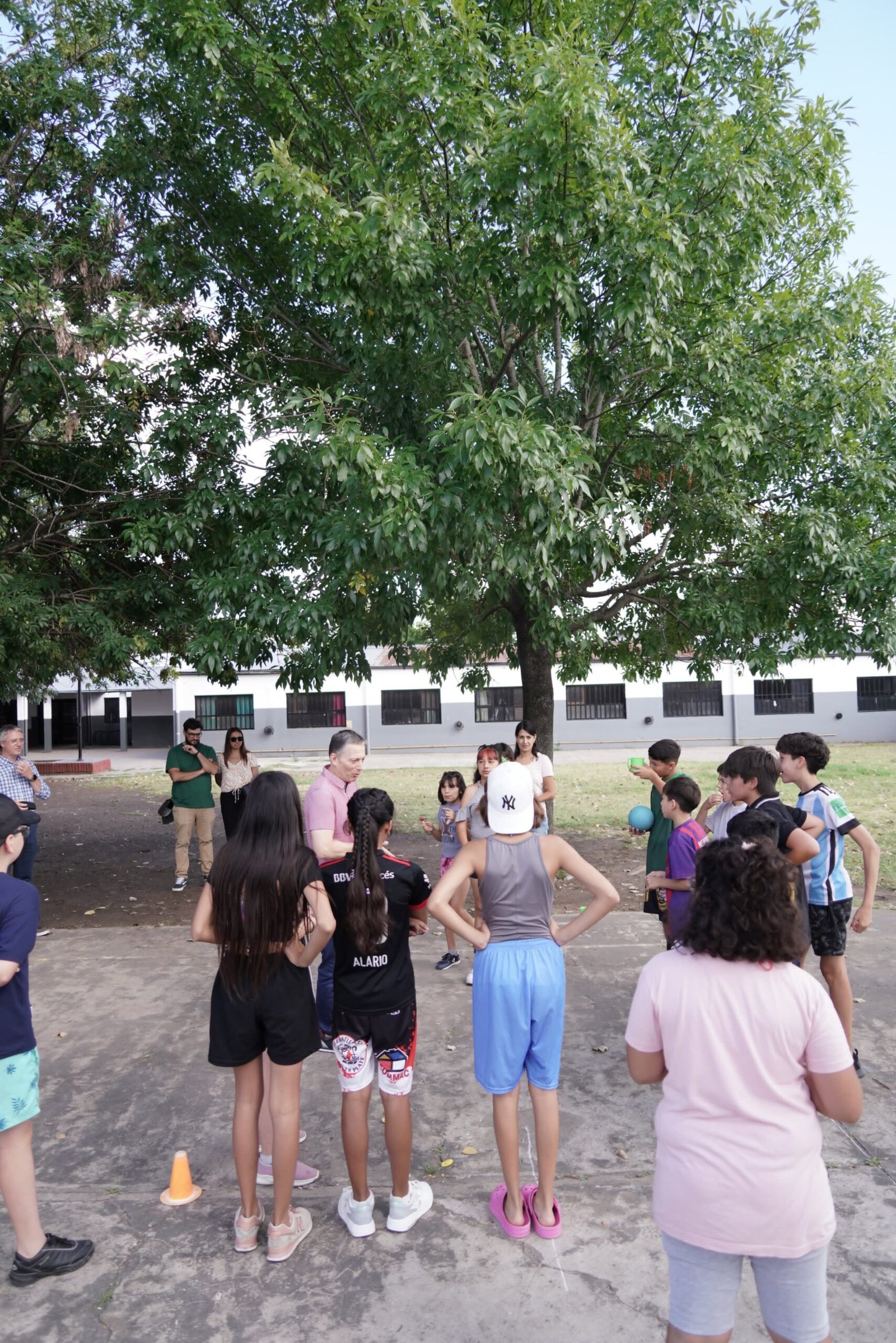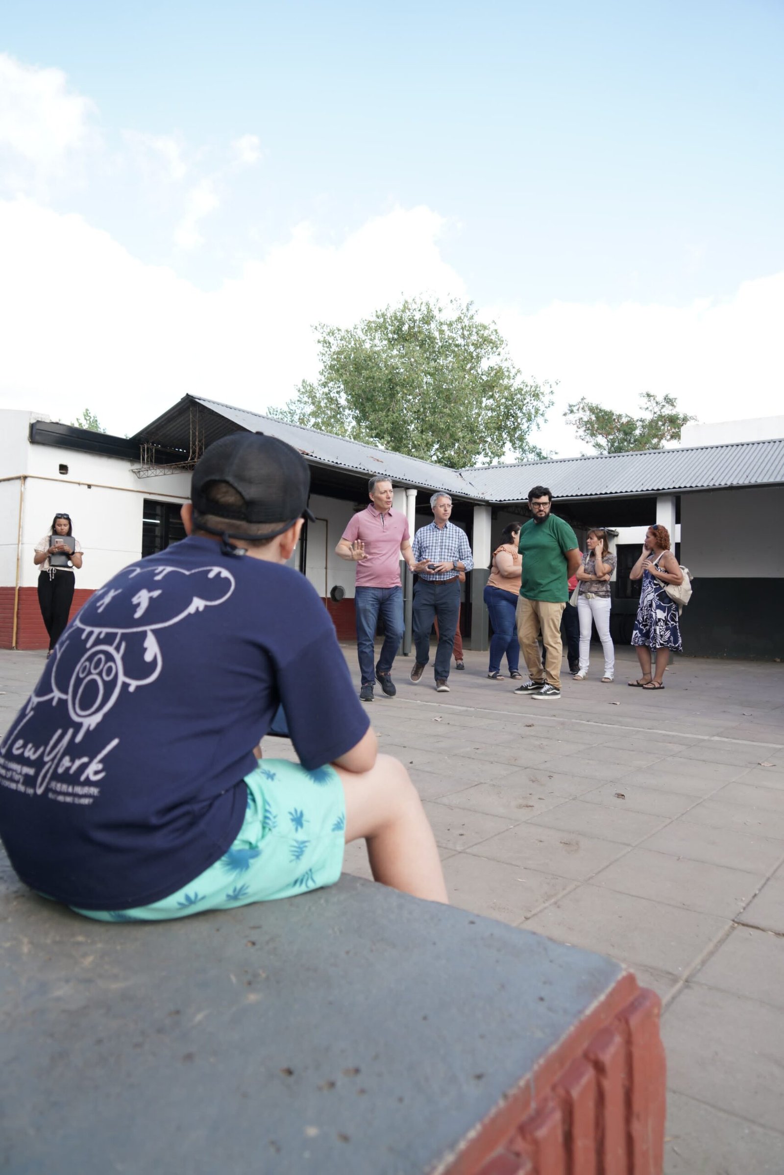 “Durante el verano continuamos con las obras en las escuelas de Esteban Echeverría antes del inicio de las clases para que las chicas y los chicos puedan estudiar en las mejores condiciones posibles”, expresó Fernando Gray, acompañado por la directora de la institución, Cecilia Villarruel, y el secretario de Obras Públicas local, Sergio Benet.