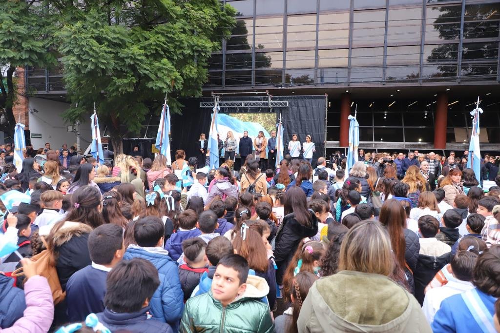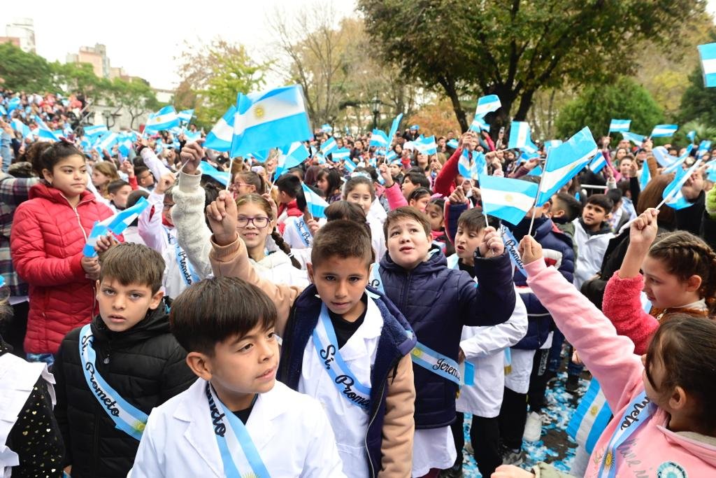 “En esta fecha tan trascendente para su formación ciudadana, les pido que se inspiren en el amor y en el bien común para su comunidad. Manuel Belgrano hoy estaría orgulloso de ustedes si las y los viera prometer lealtad a la Bandera, es decir, la lealtad a nuestra querida patria”, expresó Fernando Gray al dirigirse a las y los estudiantes.