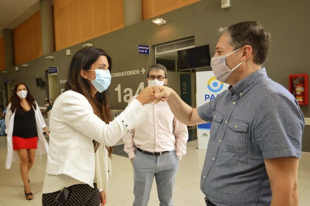 El intendente de Esteban Echeverría, Fernando Gray, y la directora ejecutiva del PAMI, Luana Volnovich, recorrieron este martes las instalaciones del Hospital de Alta Complejidad del Bicentenario del distrito, donde el PAMI dio inicio al Plan de Vacunación contra el covid-19 para el personal de la Unidad de Terapia Intensiva.