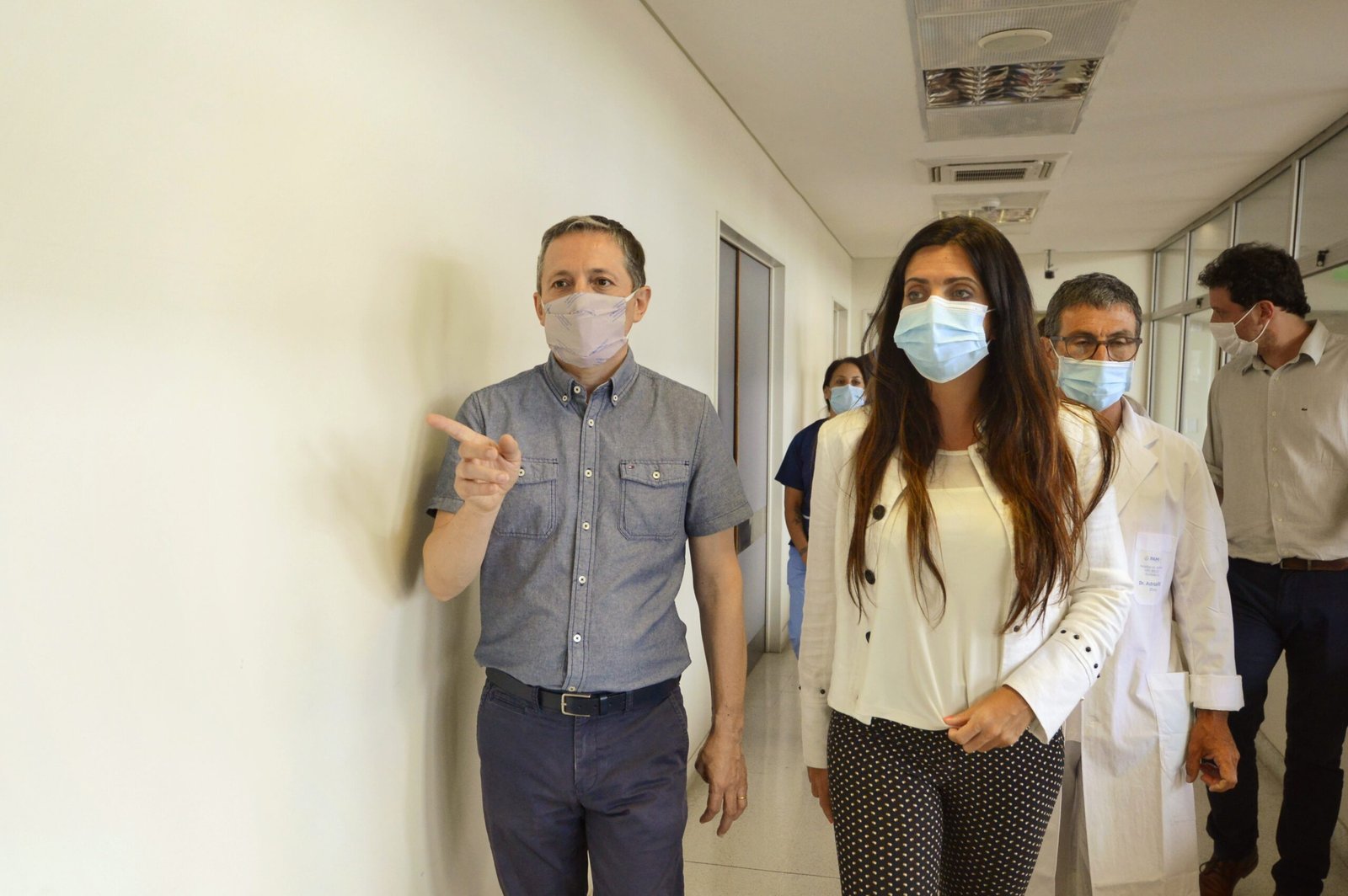 El intendente de Esteban Echeverría, Fernando Gray, y la directora ejecutiva del PAMI, Luana Volnovich, recorrieron este martes las instalaciones del Hospital de Alta Complejidad del Bicentenario del distrito, donde el PAMI dio inicio al Plan de Vacunación contra el covid-19 para el personal de la Unidad de Terapia Intensiva.