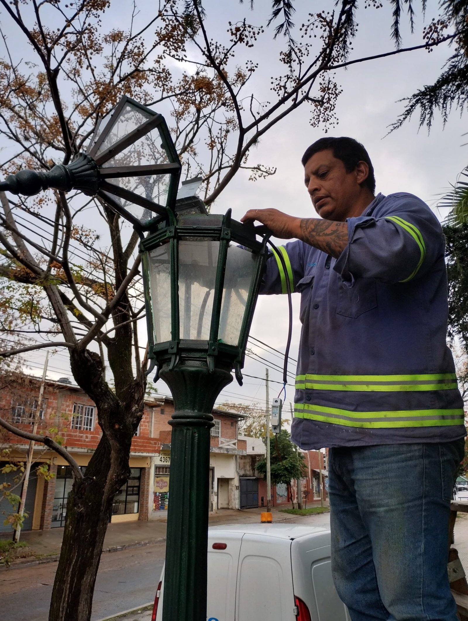 El Municipio de Esteban Echeverría avanza con la instalación de luminarias LED en la plaza Las Moreras de Luis Guillón, como parte de un plan de modernización de los espacios públicos en todas las localidades del distrito.