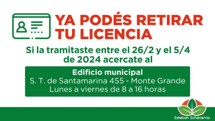 El Municipio de Esteban Echeverría informa que aquellas personas que hayan tramitado la licencia de conducir entre el 26 de febrero y el 25 de abril, ya pueden retirar el carnet en formato físico.