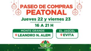 El jueves 22 y el viernes 23 de diciembre, los centros comerciales de la calle Evita (El Jagüel) y Alem (Monte Grande) se convertirán en peatonales para alentar el comercio local y dar una mayor comodidad a las vecinas y los vecinos que se acerquen a realizar las compras navideñas.