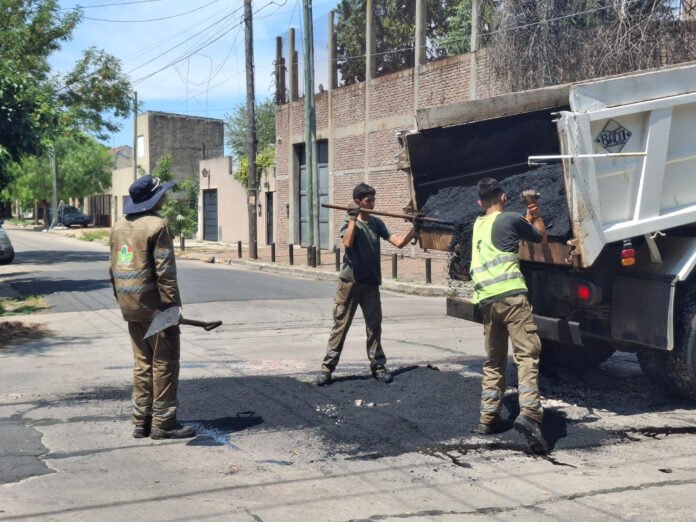 Las obras, financiadas con recursos municipales, se ejecutan en distintos sectores del distrito. El programa incluye trabajos de bacheo, pavimentación en asfalto y hormigón, repavimentación y sellado de juntas.