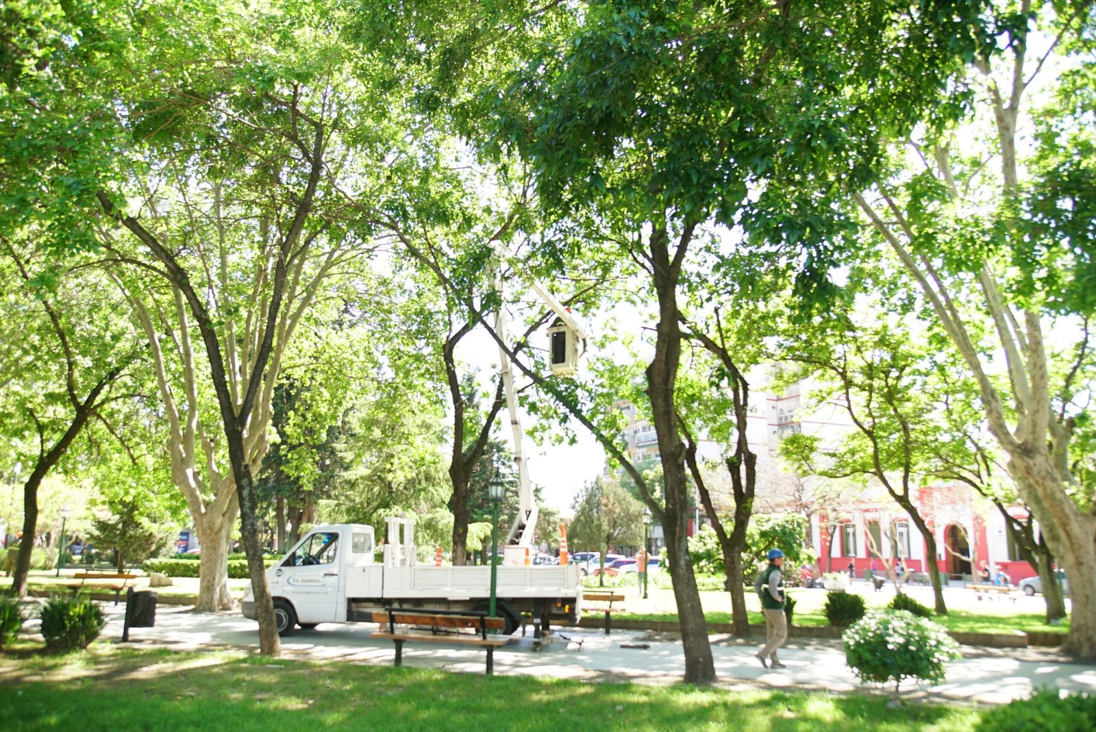 El Municipio de Esteban Echeverría realiza trabajos de mantenimiento general del arbolado de la plaza Mitre (Monte Grande). Esta tarea se lleva a cabo con el objetivo de evitar que la flora obstaculice la visión en el espacio público y la circulación de las vecinas y los vecinos.