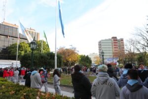 El proyecto “Colores que unen” incluyó actividades que buscaron interpelar a quienes pasaban por la plaza. En ese sentido, los grupos de estudiantes repartieron escarapelas a las vecinas y a los vecinos, y realizaron una suelta de globos con mensajes para toda la comunidad.