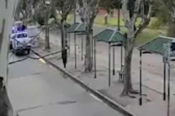 Personal del Centro Operativo de Monitoreo (COM) visualizó, a través de las cámaras seguridad, que dos personas sustraían baldosas de la plaza y las depositaban en un vehículo Ford F100.