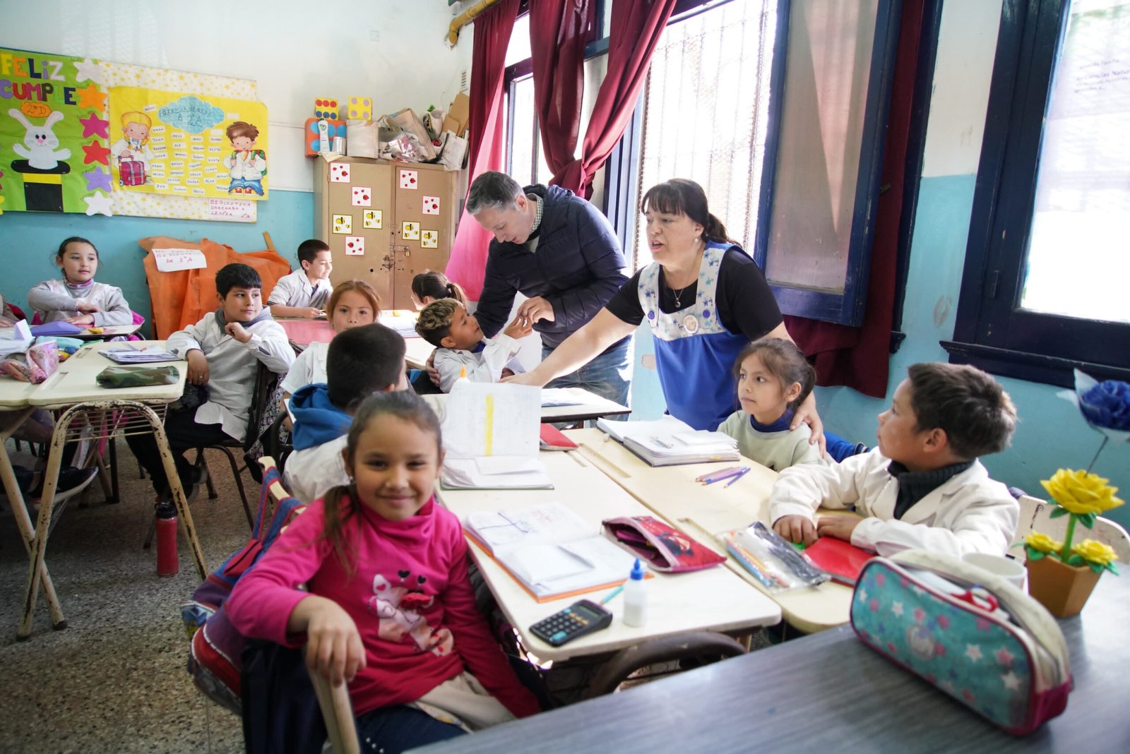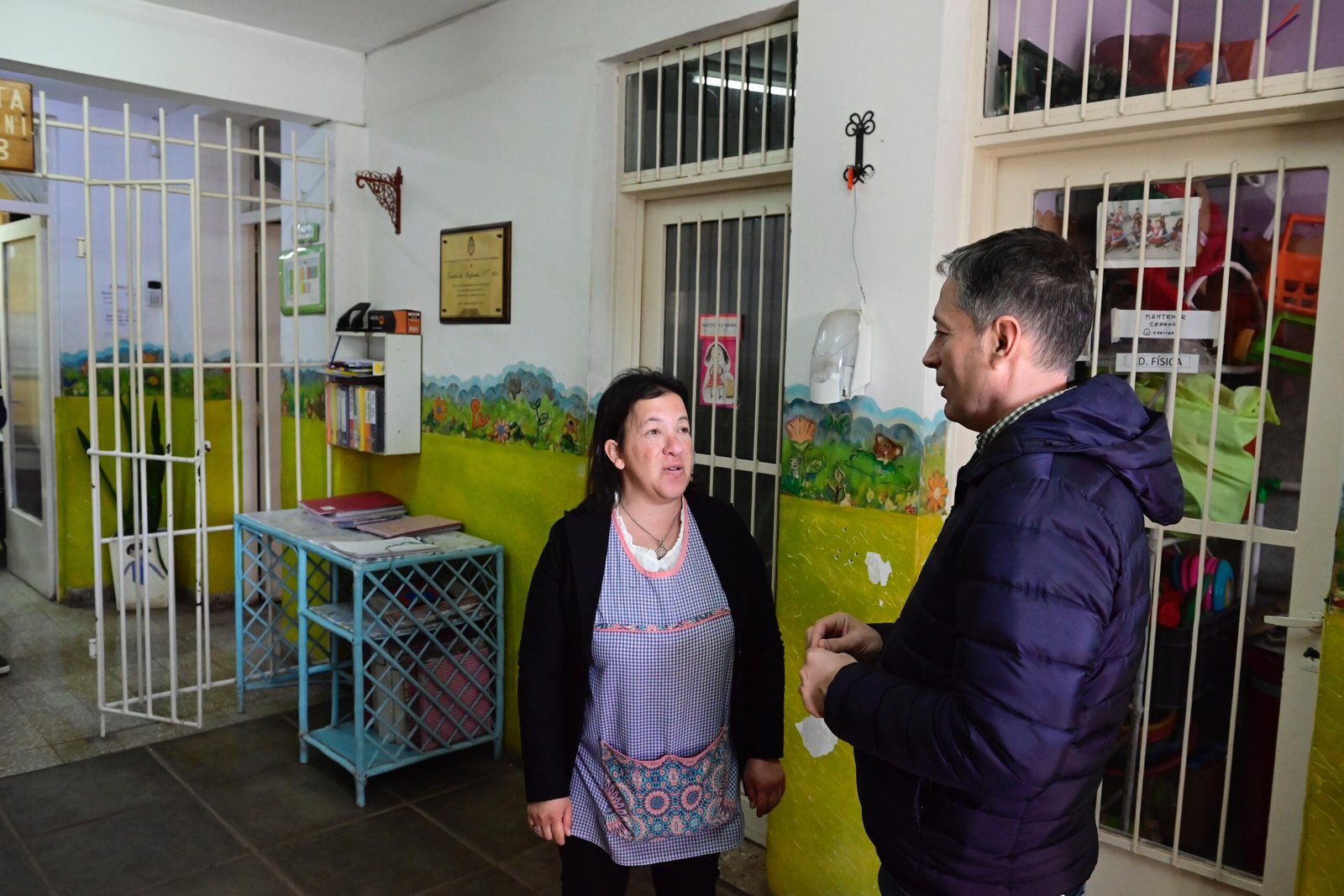 Más tarde, el intendente visitó el Jardín de Infantes N° 901, donde fue recibido por su directora, Soledad Enríquez. Allí dialogaron sobre los proyectos que la institución lleva a cabo con 250 niñas y niños, y sus familias. Después, con Sandra Rodríguez, directora de la Escuela Primaria N° 2, recorrió el establecimiento que recibe a 703 chicas y chicos del barrio.