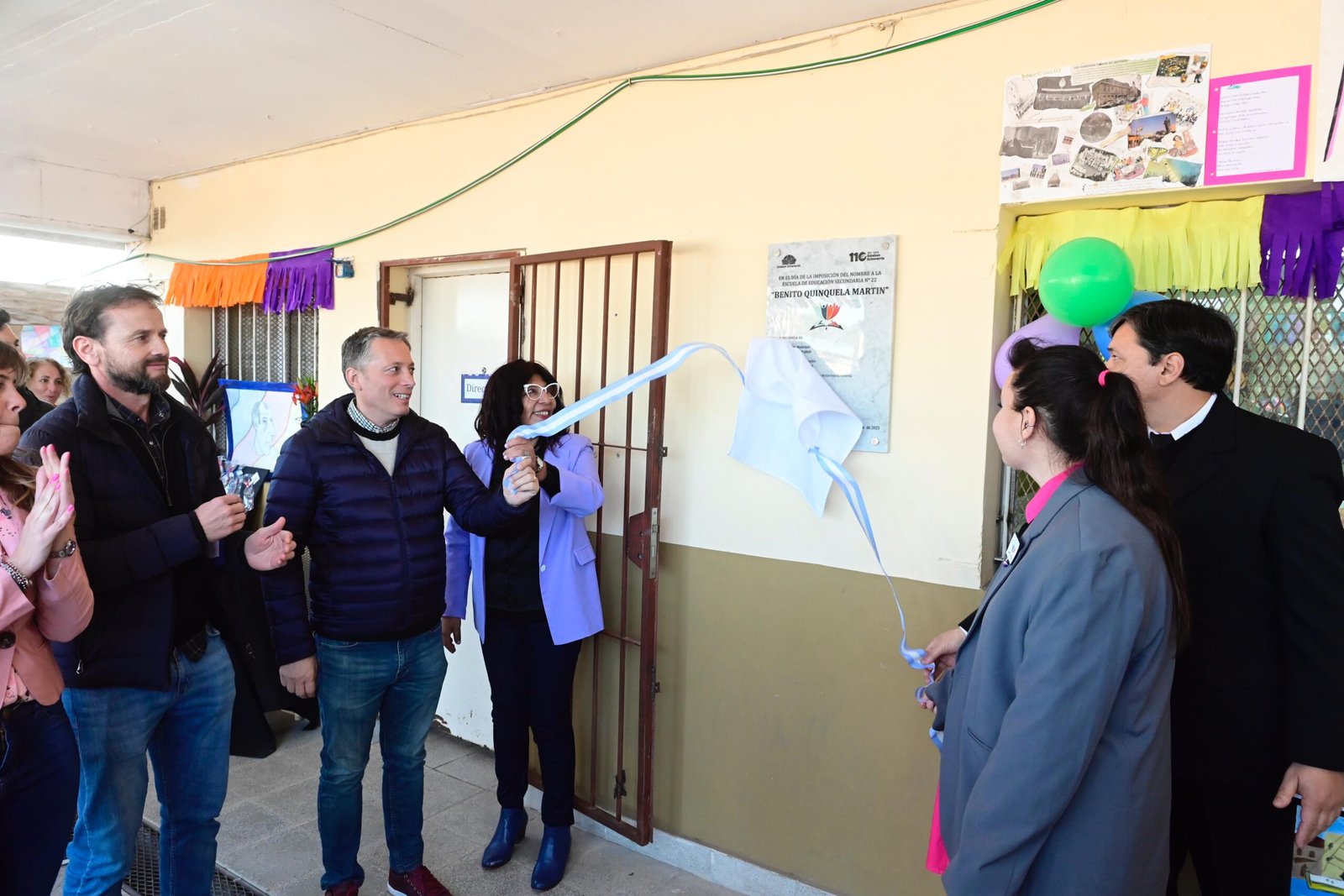 Durante su recorrido por la obra de la Escuela Secundaria N° 22, el jefe comunal destacó: “Avanzamos con los trabajos en los edificios de las instituciones educativas del distrito. En este caso, estamos construyendo más aulas que permitirán mejorar las condiciones de aprendizaje y ampliar la matrícula para que más chicas y chicos puedan asistir a la escuela”. Luego, junto con la directora y la comunidad educativa, Fernando Gray participó de la ceremonia de imposición de nombre del establecimiento, que desde hoy se llamará Benito Quinquela Martín en homenaje al pintor argentino.