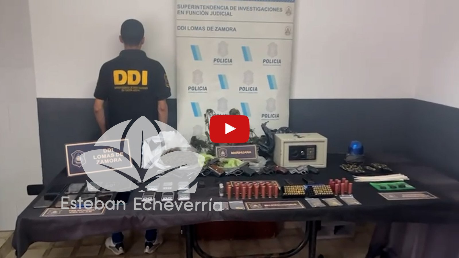 En el allanamiento en Monte Grande, las fuerzas de seguridad aprehendieron a un hombre y una mujer, quienes quedaron a disposición de la Justicia. Además, allí se secuestraron dos vehículos (un Ford Ka y una Peugeot Partner) y un motovehículo Motomel. En el lugar también se incautaron tres armas de guerra, dos armas de uso civil, cajas de cartuchos, municiones, once teléfonos celulares, cuatro bicicletas Mountain Bike y estupefacientes.
