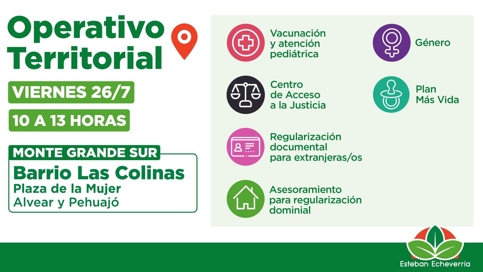 El Municipio de Esteban Echeverría llevará adelante nuevas jornadas de operativos territoriales destinados a descentralizar la atención y facilitar a las vecinas y los vecinos el acceso a diferentes trámites.