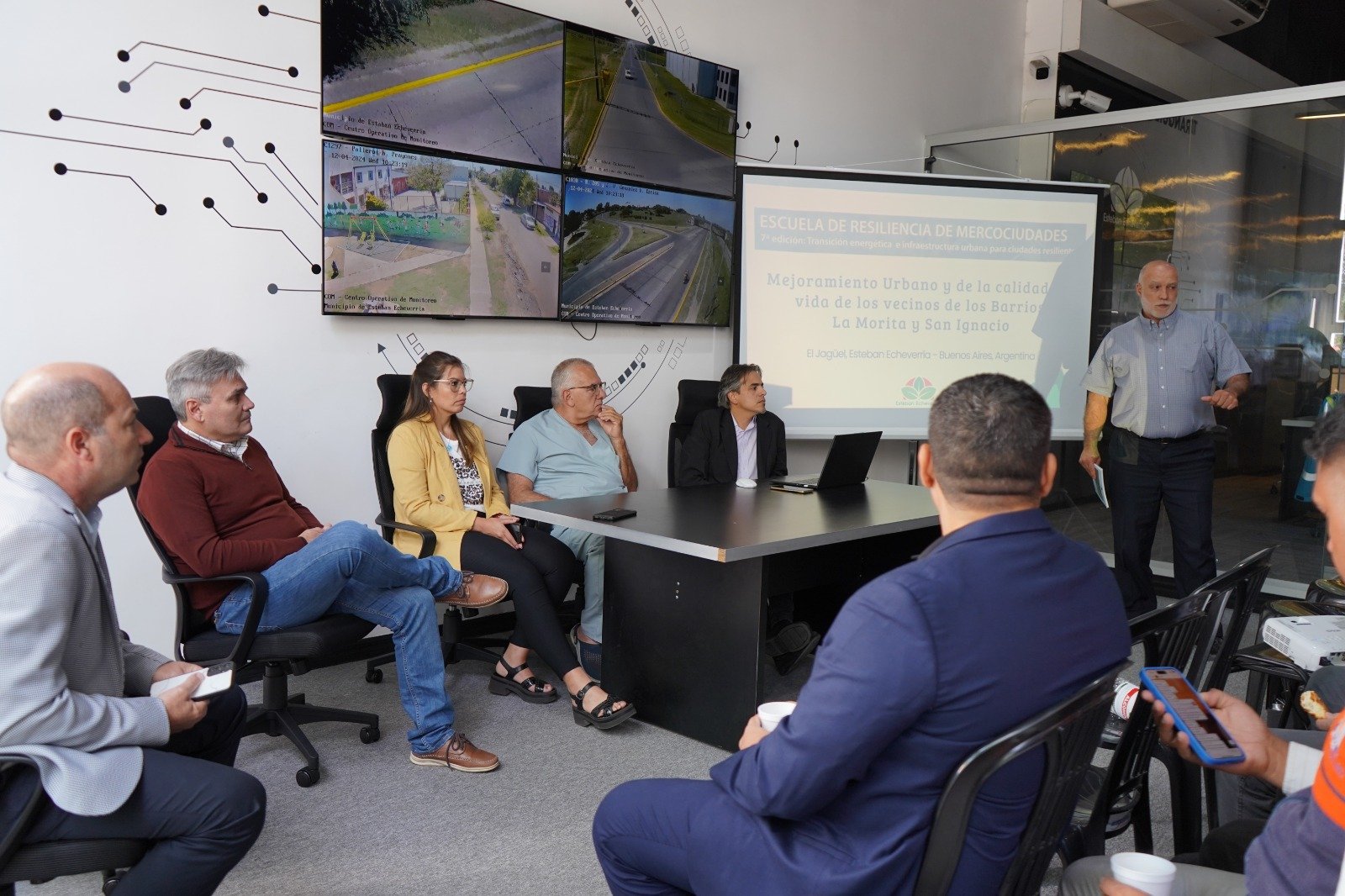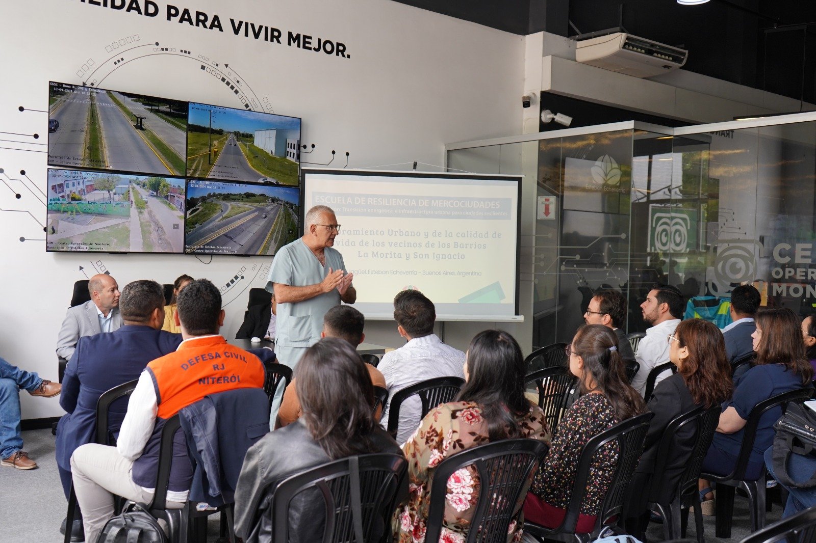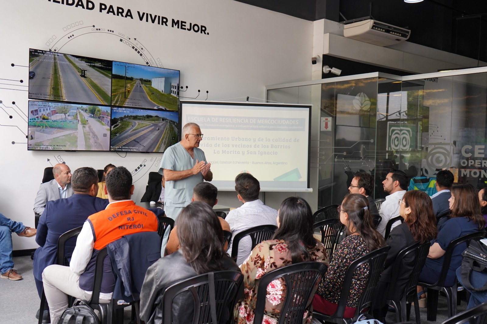 En el cierre de la 7ª edición de la Escuela de Resiliencia de Mercociudades, que se desarrolló en Esteban Echeverría, especialistas y equipos técnicos de los gobiernos locales latinoamericanos que participaron del encuentro recorrieron el Centro Operativo de Monitoreo (COM) municipal. Durante la jornada intercambiaron experiencias en seguridad, alerta temprana, salud, inclusión y asistencia directa a la ciudadanía junto a las autoridades locales.