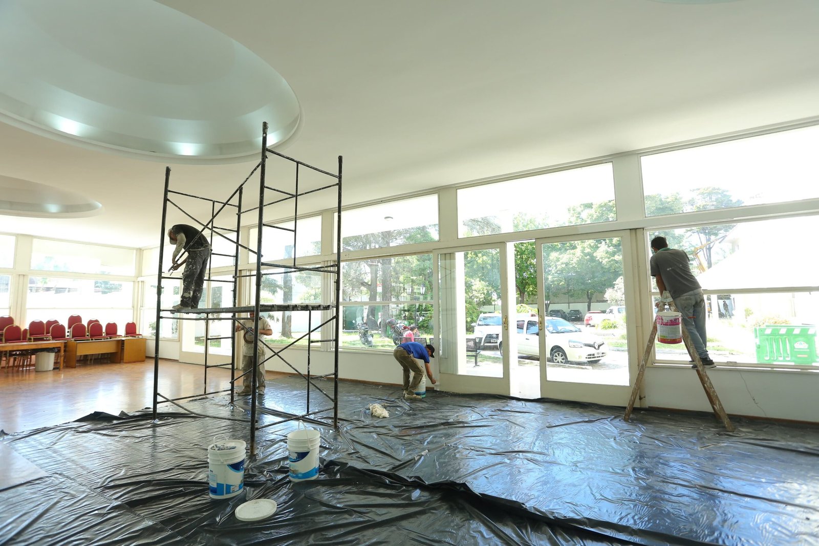 Asimismo, se trabaja en la renovación de la iluminación en el Salón de los Espejos y del patio interior, y en tareas de pintura y limpieza de los espacios verdes de la pérgola exterior.