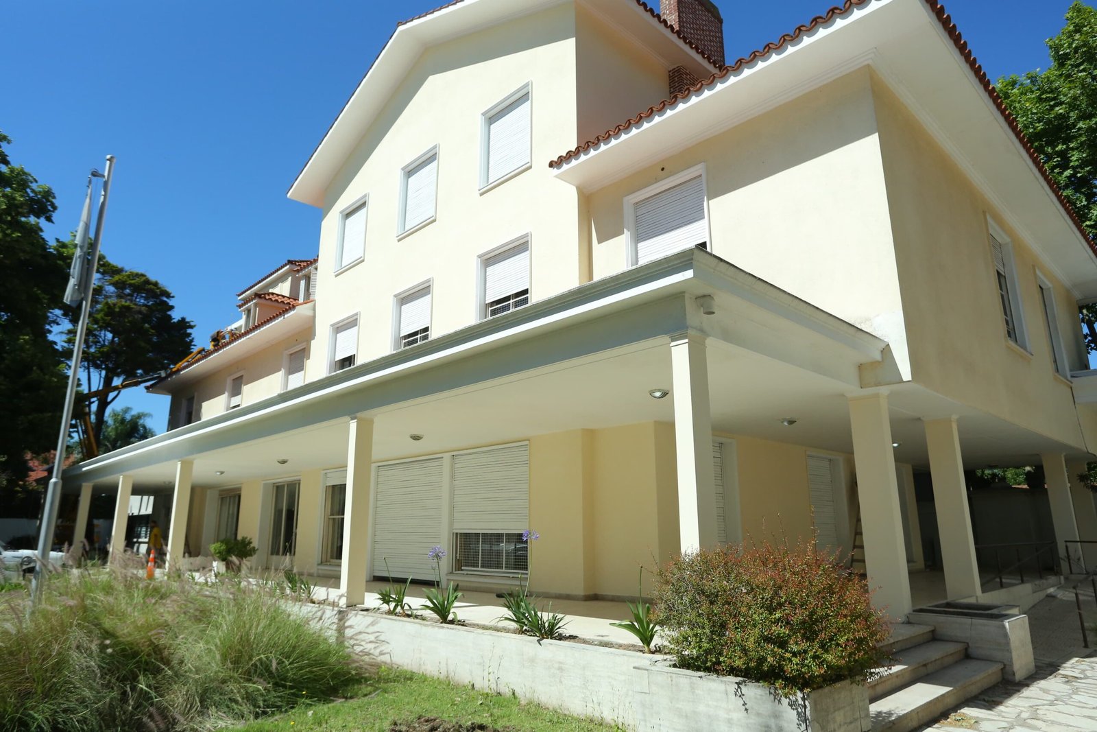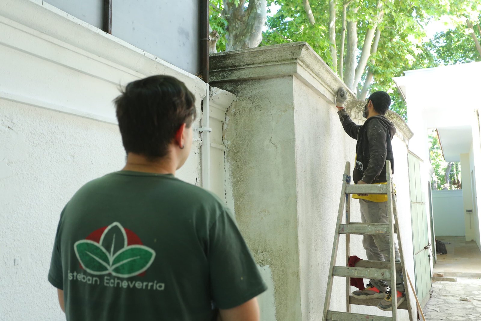 Los equipos del Municipio de Esteban Echeverría avanzan con las obras de refacción del Polo Judicial de Monte Grande. Las tareas se realizan en los espacios de la Alcaidía, el edificio principal, el Salón de los Espejos y el patio interno con sectores de jardines y canteros.