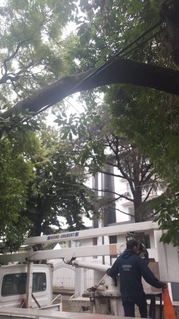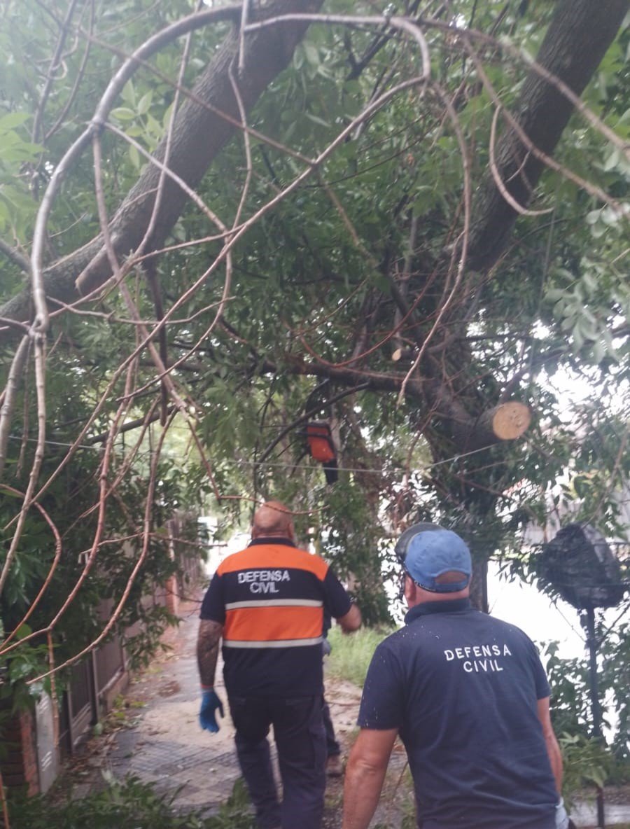 Luego de los fuertes vientos registrados en el distrito y en la región, el equipo de Defensa Civil de Esteban Echeverría se encuentra trabajando en la poda de seguridad de ramas que sufrieron daños y presentan peligro de caída en la vía pública.